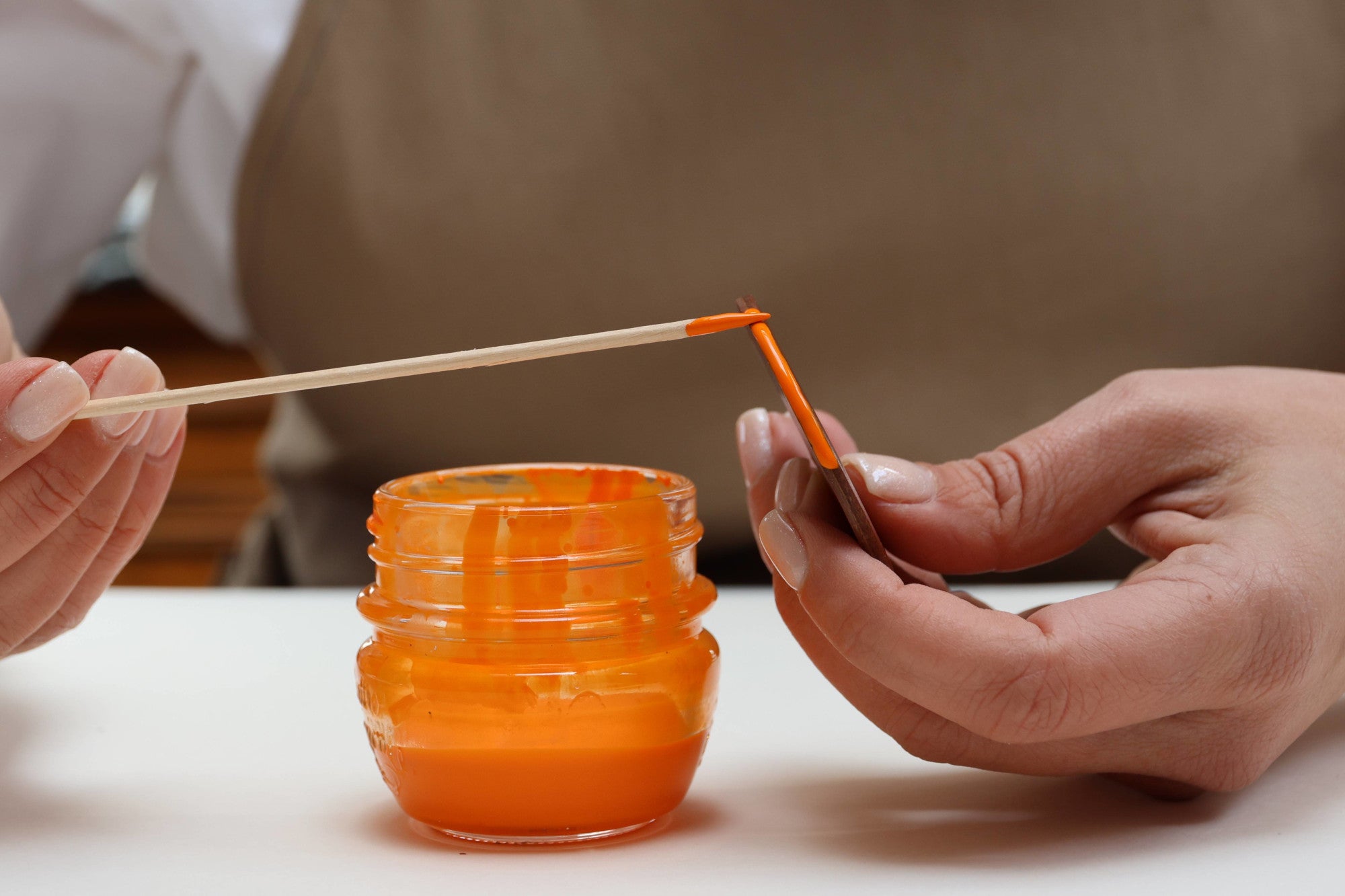 Boucles d’oreilles pendantes en cuir orangé et clous en acier inoxydable